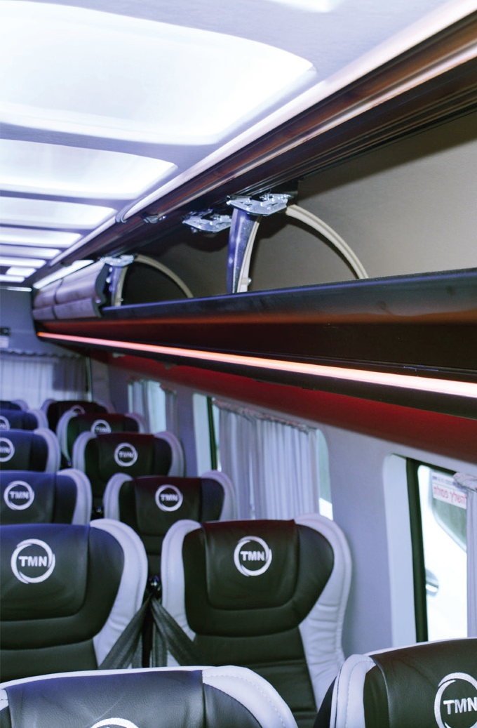 منظومة إضاءة ليد داخلية، خطوط من النيكل، مقاعد سائقين فخمة، درجة للسيارة، تلفزيون ضخم ومنظومة تكييف هواء مع غطاء خاص للسقف. كل هذه الأمور تمنح سيارة السفريات مظهرا جديدا وفخما، مع أقصى حد من الراحة للسائق وللمسافرين.